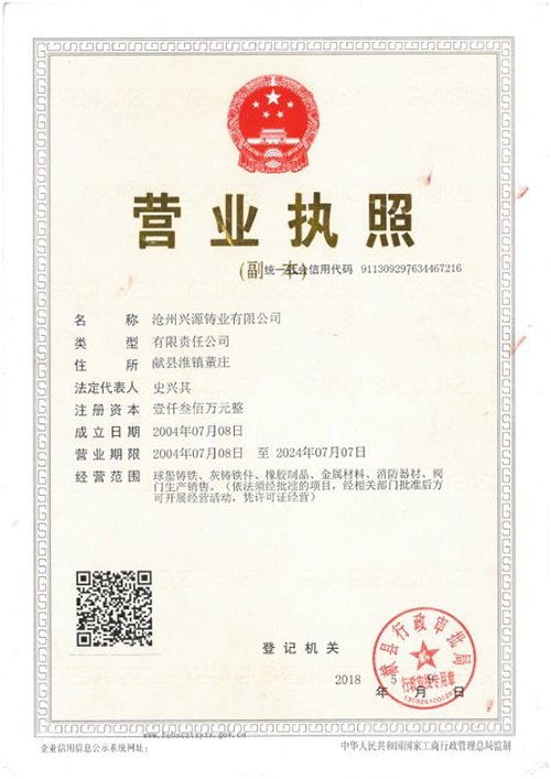 滄州興源鑄業(yè)有限公司主要產(chǎn)品有:K型承套、K型彎頭、承插變徑、承插彎頭、盤(pán)插(乙管)、盤(pán)承(甲管)、全盤(pán)三通、雙承中盤(pán)三通、雙盤(pán)彎頭等系列以及各種鑄件,產(chǎn)品用于大中小型企業(yè),如化工、電業(yè)、冶金等。